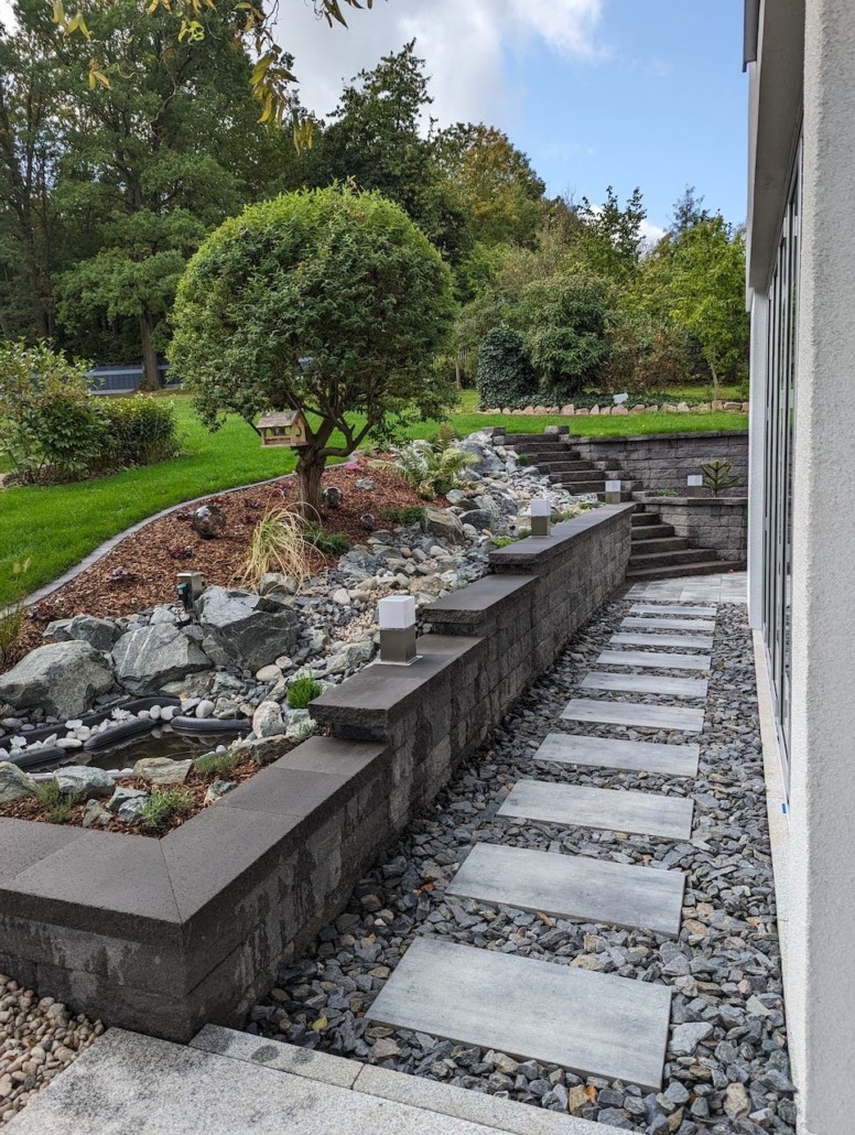 Jedes Projekt ist ein individuelles Ergebnis aus Kreativität, handwerklichem Können mit gründen Daumen und echter Leidenschaft für grüne Lebensräume. Ob Natursteinmauer, neue Terrasse, harmonische Bepflanzung oder komplette Gartenneugestaltung – wir begleiten unsere Kundinnen und Kunden von der ersten Idee bis zur fertigen Umsetzung. Dabei steht eines immer im Mittelpunkt: ein Garten, der Freude schenkt und zu Ihnen passt.